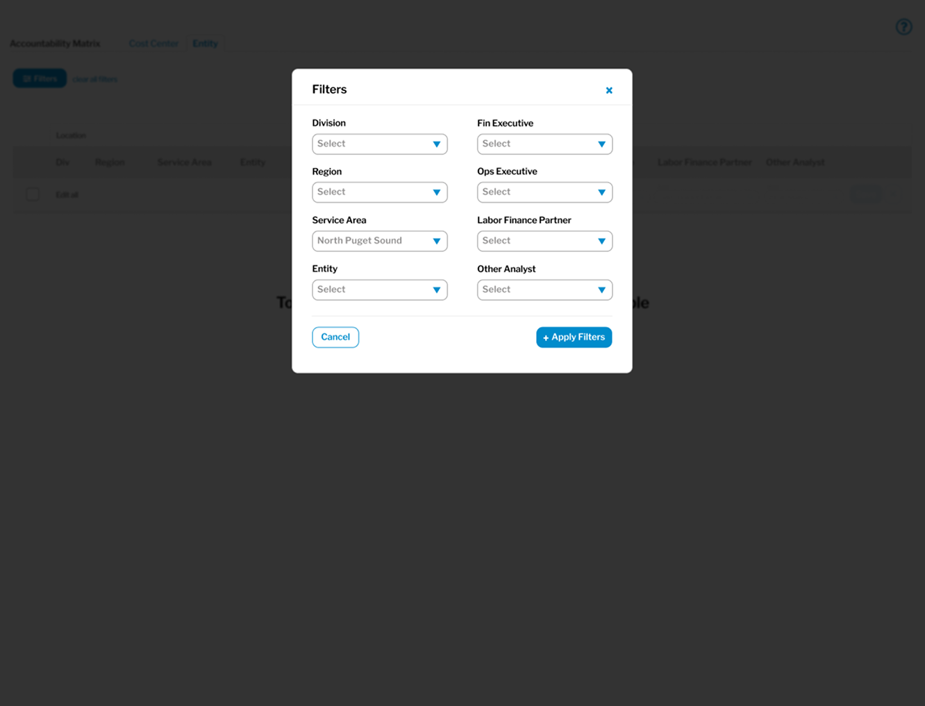 Providence Healthcare manages an enormous and complex financial ecosystem spanning thousands of departments, multiple regions, and a broad community of finance and operations users. Before this project, there was no standardized or reliable method for determining which financial caregivers were responsible for which departments resulting in fragmented spreadsheets, manual distribution lists, access inconsistencies, and gaps in critical reporting.I was brought in to design and build a new internal tool titled The Accountability Matrix using an existing BRD as the foundational reference. This tool provides a single system of record for assigning, maintaining, and governing caregiver responsibilities across Finance (Finance Partners, Informed Finance) and Operations (Primary Ops, Secondary Ops, and Informed Ops) roles.